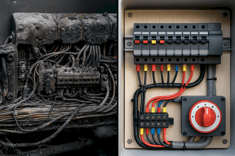 Düzenli bakım, denizde güvenliğin temelidir; kablo, bağlantı ve sigorta hatalarını termal ve elektriksel testlerle tespit ediyoruz. Arıza durumlarında sahada hızlı müdahale ile kesintiyi minimumda tutuyoruz. Tesisatlarda uygun kesit, koruma ve topraklama/sacrificial düzenini sağlayarak yük altında güven veriyoruz. Her işlem sonunda rapor ve öneri listesi sunuyoruz.